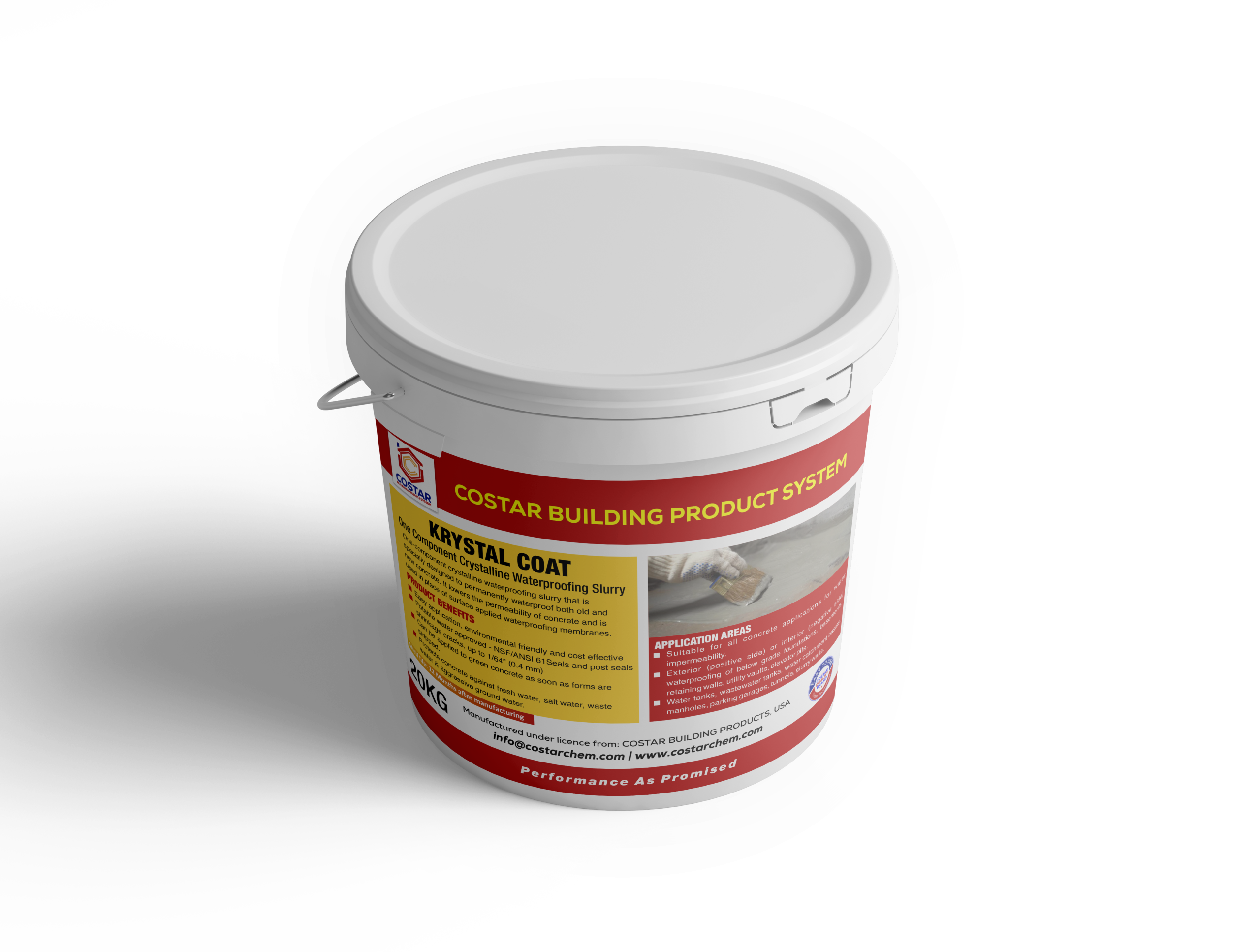 Krystal Coat is one-component crystalline waterproofing slurry that is specially designed to permanently waterproof both old and new concrete. It lowers the permeability of concrete and is used in place of surface applied waterproofing membranes for improved durability and longevity of concrete.